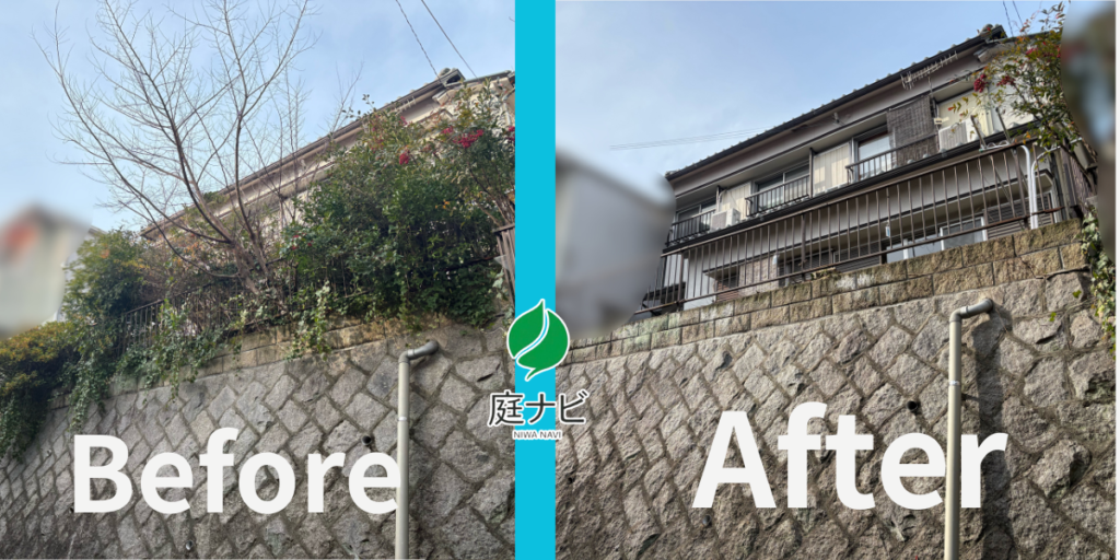 敷地から飛び出た枝や大きく育った樹木から落ち葉の飛散もなくなりました。