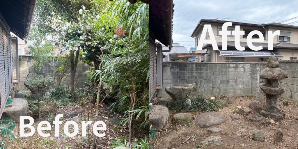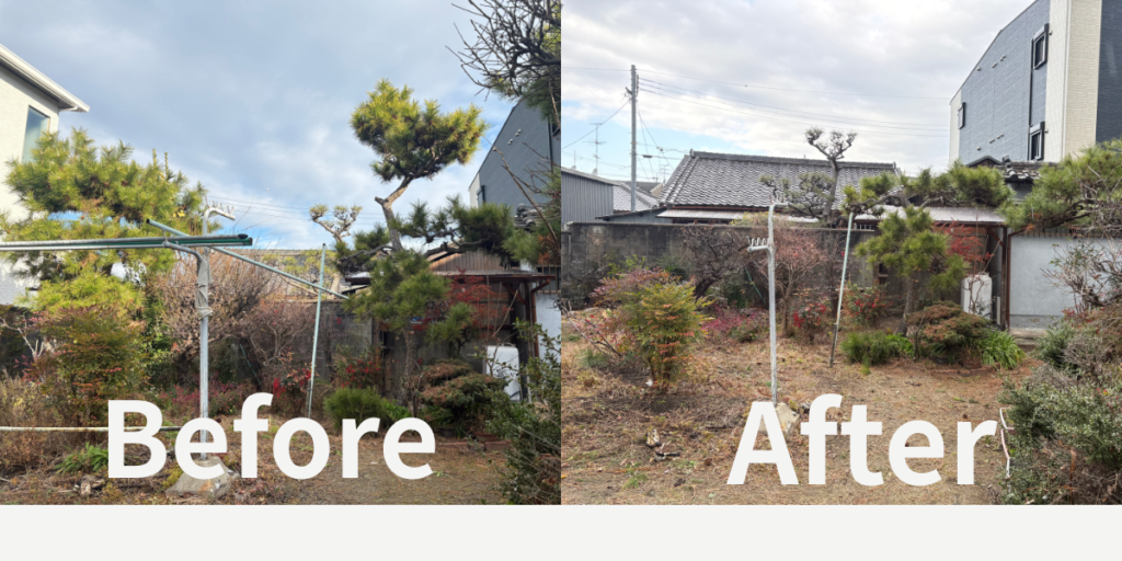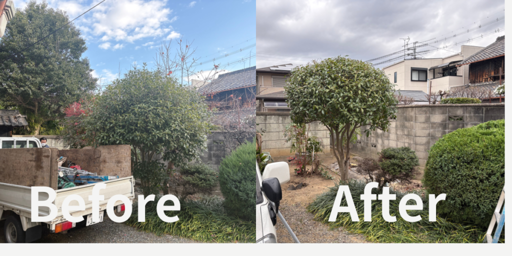 藤井寺市で伐採・剪定を行いました|長期間手入れができていなかったお庭の整理事例